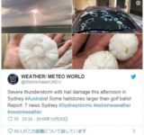 【オーストラリア】上空から「巨大な雹(ヒョウ)」が降り注ぐ…テニスボールより大きく、被害が相次ぐ